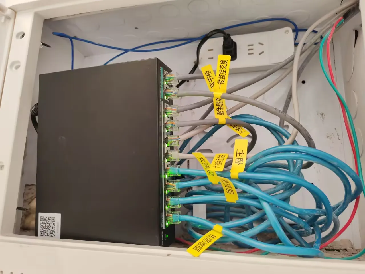 最后就是八楼的弱电箱里也丢一个吸顶 AP 就行了。不得不说吸顶 AP 劲就是大,在楼下几十米开外都能搜索到 WiFi 信号。